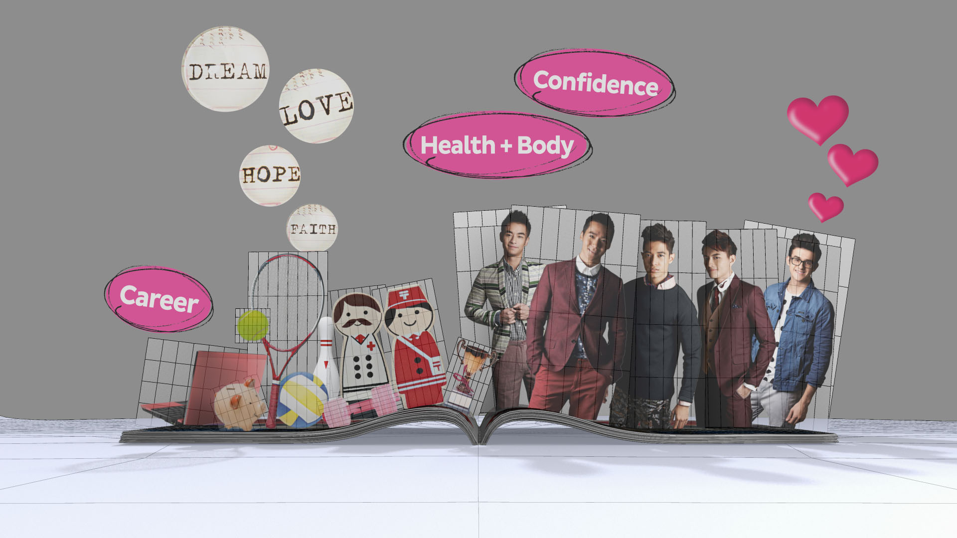 As a publisher, CLEO Magazine has a vast collection of media assets that were already being used within the magazine. Wonderfully shot photos and illustrations that showed what the magazine was about, were used as textures in a 3D environment, modeled and animated within Autodesk Maya.
